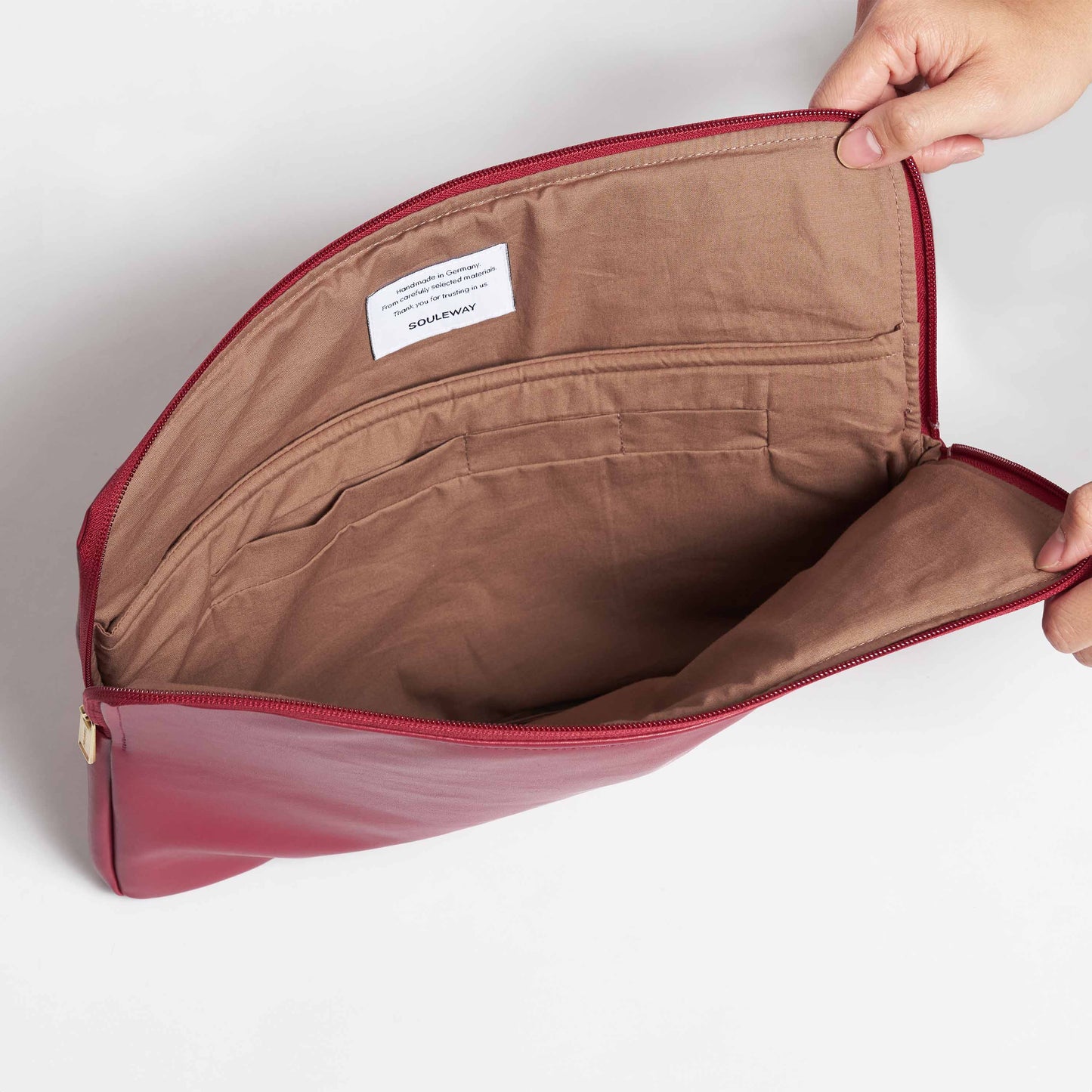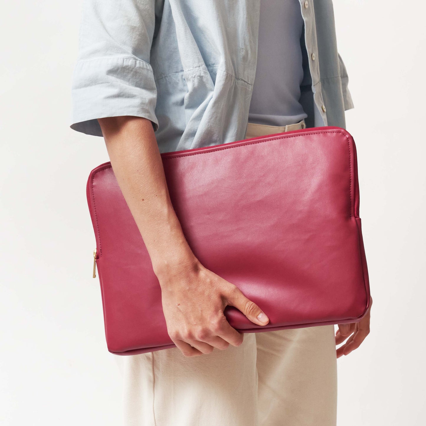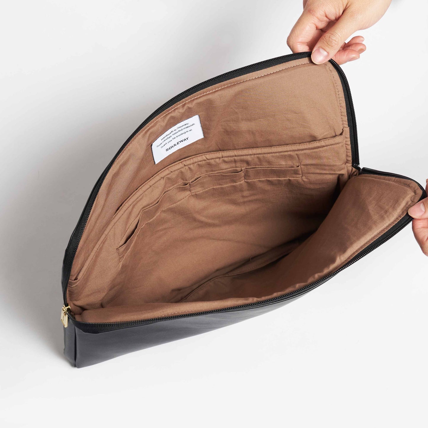 Das Laptop Sleeve wird aus der innovativen, veganen Lederalternative Oleatex gefertigt. Es bietet Platz für Laptops bis zu 15 Zoll und schützt dank weicher Polsterung zuverlässig im Alltag. Zwei offene Fächer sorgen für Struktur und bieten Platz für kleine Alltagsgegenstände. Zeitlos im Design und hochwertig verarbeitet ist es der perfekte Begleiter fürs Büro oder für unterwegs.